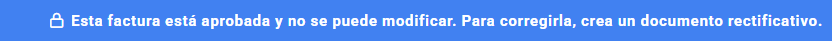 Luego pasas a Aprobar la factura y a partir de ese momento hay campos que ya no te va a dejar editar, salvo generando una factura rectificativa: